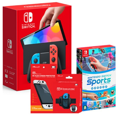 닌텐도 스위치 OLED 본체 네온 + 스포츠타이틀 + 필름 + 레그스트랩